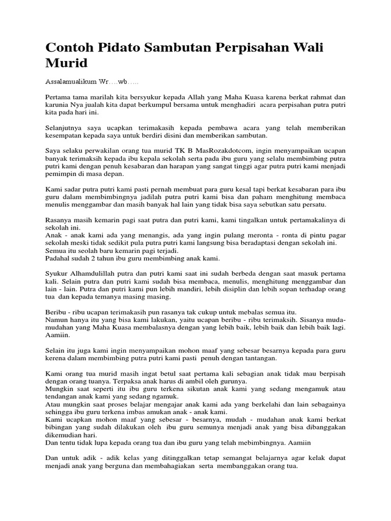 Contoh Pidato Sambutan Perpisahan Wali Murid Sumber : www.scribd.com